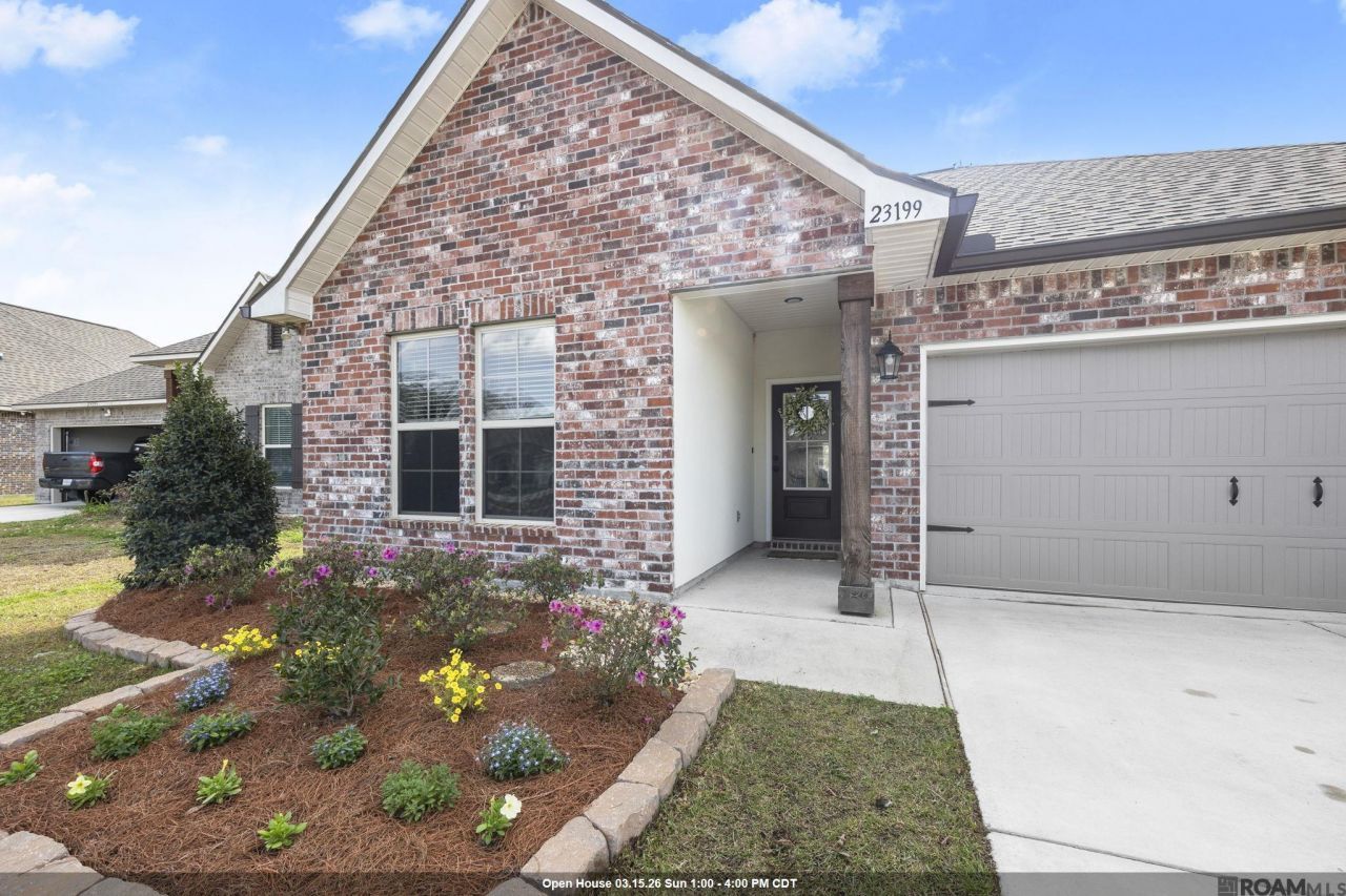 OPEN HOUSE SUNDAY 3/15 FROM 1:00-4:00! Welcome home to this immaculate, better than new 4 bedroom 2 1/2 bath open design beauty! The view and sunsets from the back yard are STUNNING! The neighborhood features several ponds for recreation and fishing. Upgrades at construction include painted cabinets, hardware, granite, stainless steel appliances, undermount lighting and carriage lights at garage entry. Upgrades made since purchase are full gutters, fenced back yard, stylish shelving, beautiful front garden and accent walls. Kitchen features include gas range, huge island with barstool area, granite and walk-in pantry. The split floor plan features the primary suite at the back of the home with a spacious bedroom and bathroom suite with double vanities, separate shower and soaking tub and huge closet. The other 3 bedrooms are located towards the front of the home and share a full bath, with a 1/2 bath nearby and large laundry room. Conveniently located just 5 miles from OLOL Regional Medical Center and I-12 with shopping and dining close by. Energy efficient! Schedule your showing today! Qualifies for 100% financing, Flood zone X - does not require flood insurance!
